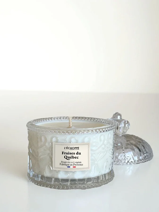 BONBONNIÈRE DÔME Bougie parfumée cire 100 % végétale soja Mèche en coton Durée de combustion 50 h Poids Net : 180g Parfum de Grasse Fabriqué en France